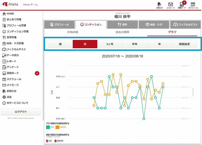 ぜひコンディショングラフを活用して、選手の日々のコンディショニングをサポートしてあげてください。