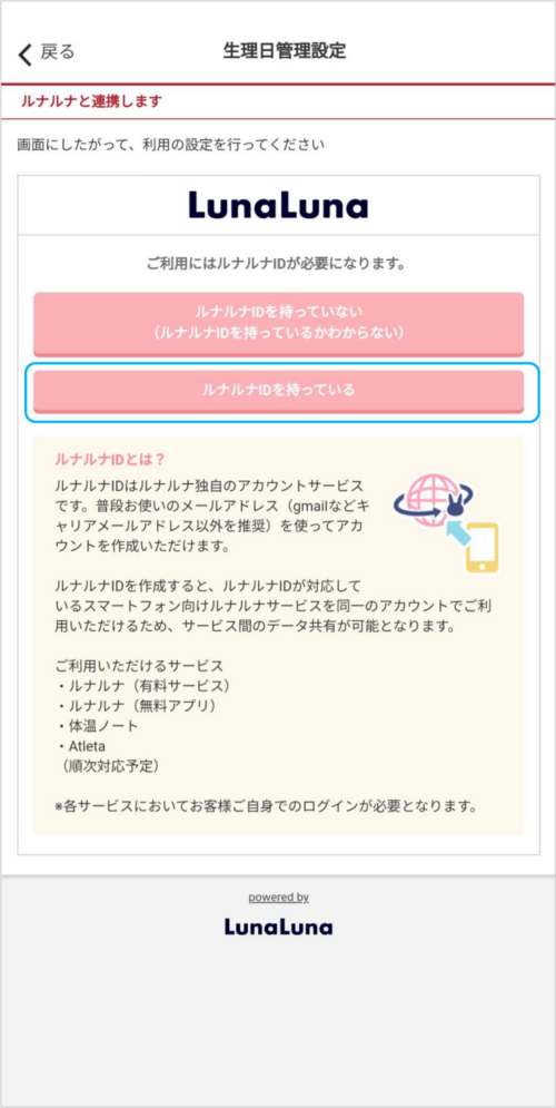 ルナルナIDを持っている(既にルナルナを利用している)場合
